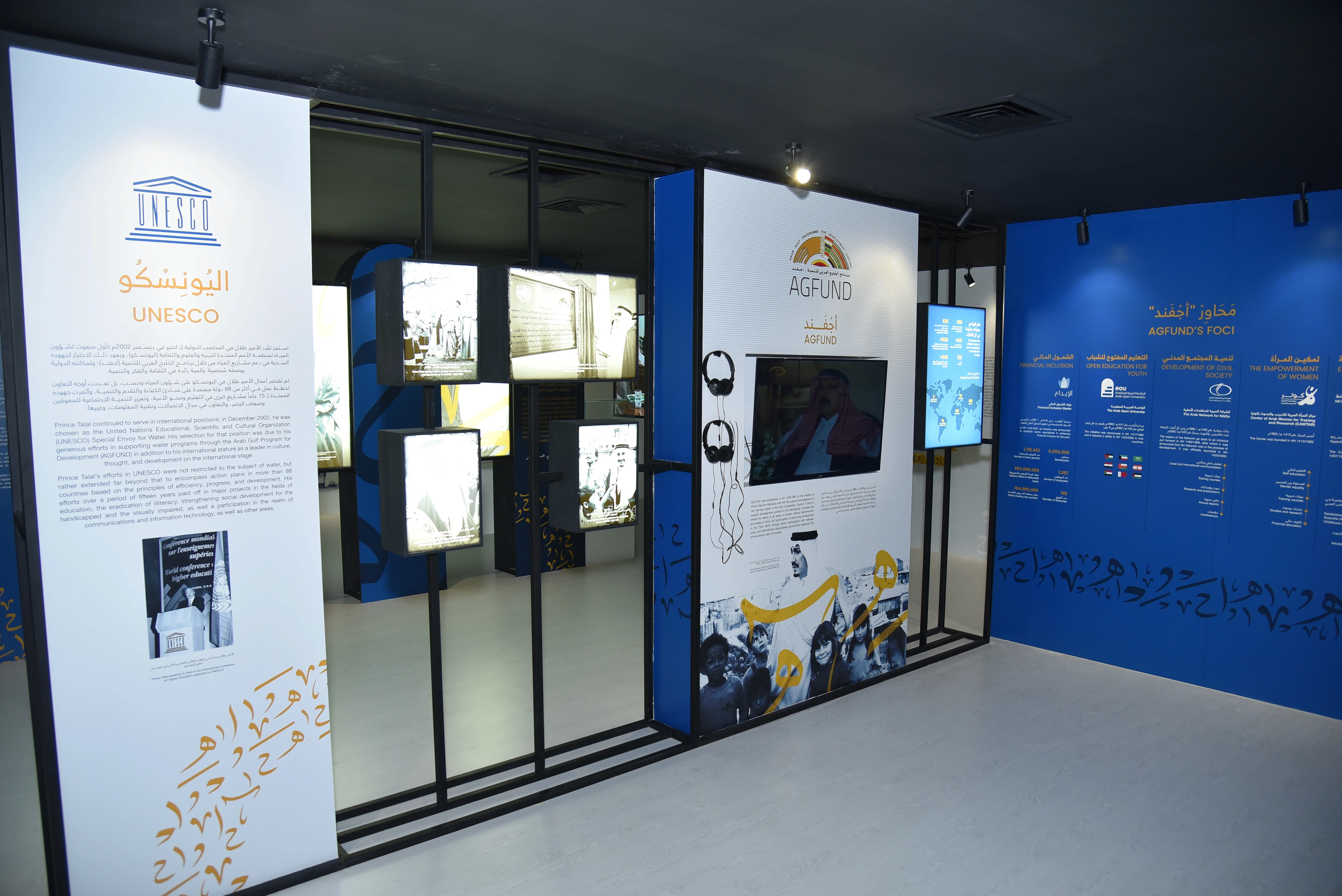 تصميم وتنفيذ تجربة عرض متحفي تروي سيرة الجامعة وسيرة مؤسسها، وتوضح كيف تأسست الجامعة على رؤية المؤسس في خدمة التعليم والتنمية المعرفية، عبر سرد بصري ومحتوى نصي يبرز أثر المؤسس في تشكيل مسار الجامعة وتطورها، ضمن تجربة متحفية واضحة ومتسقة.