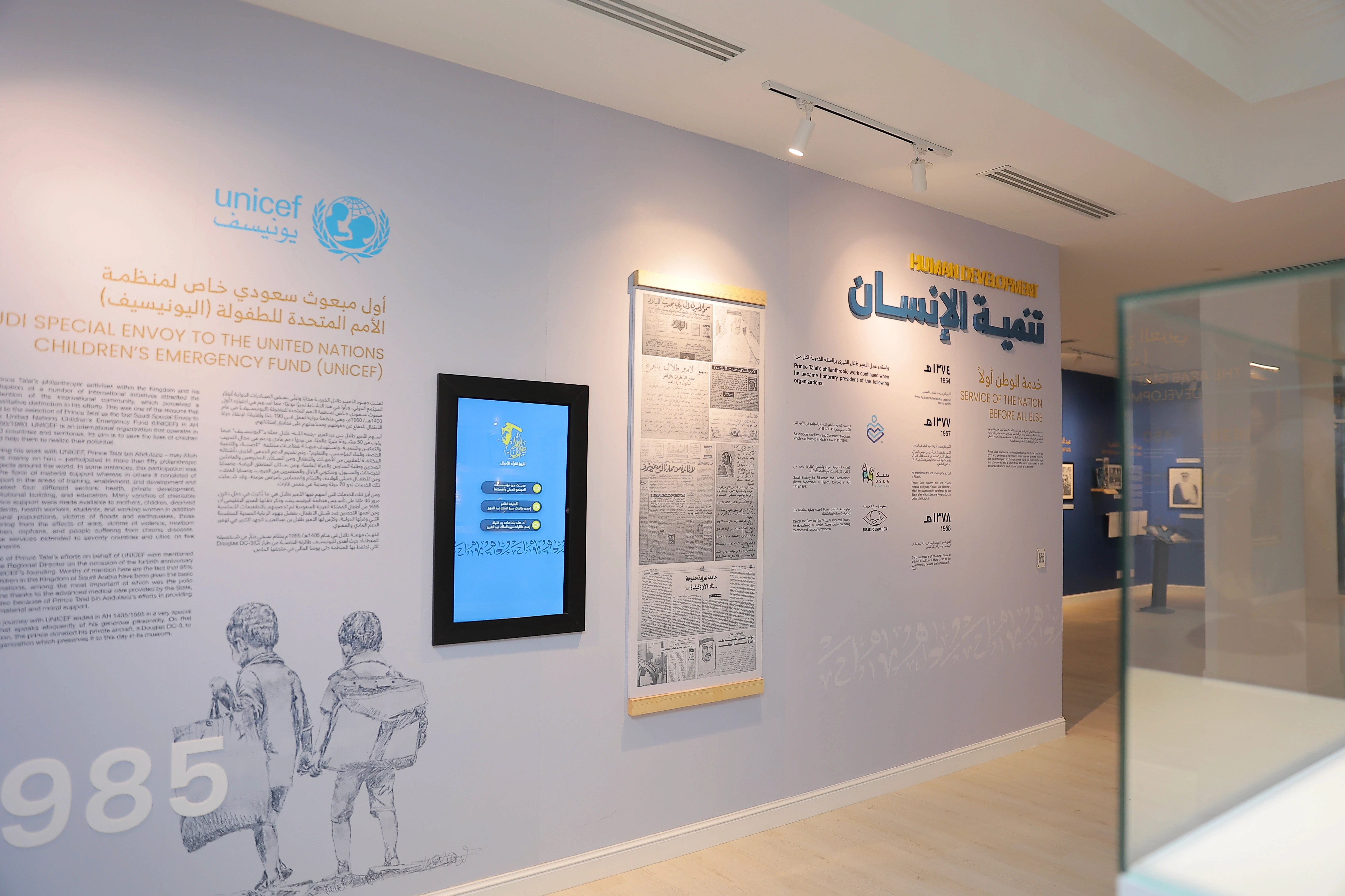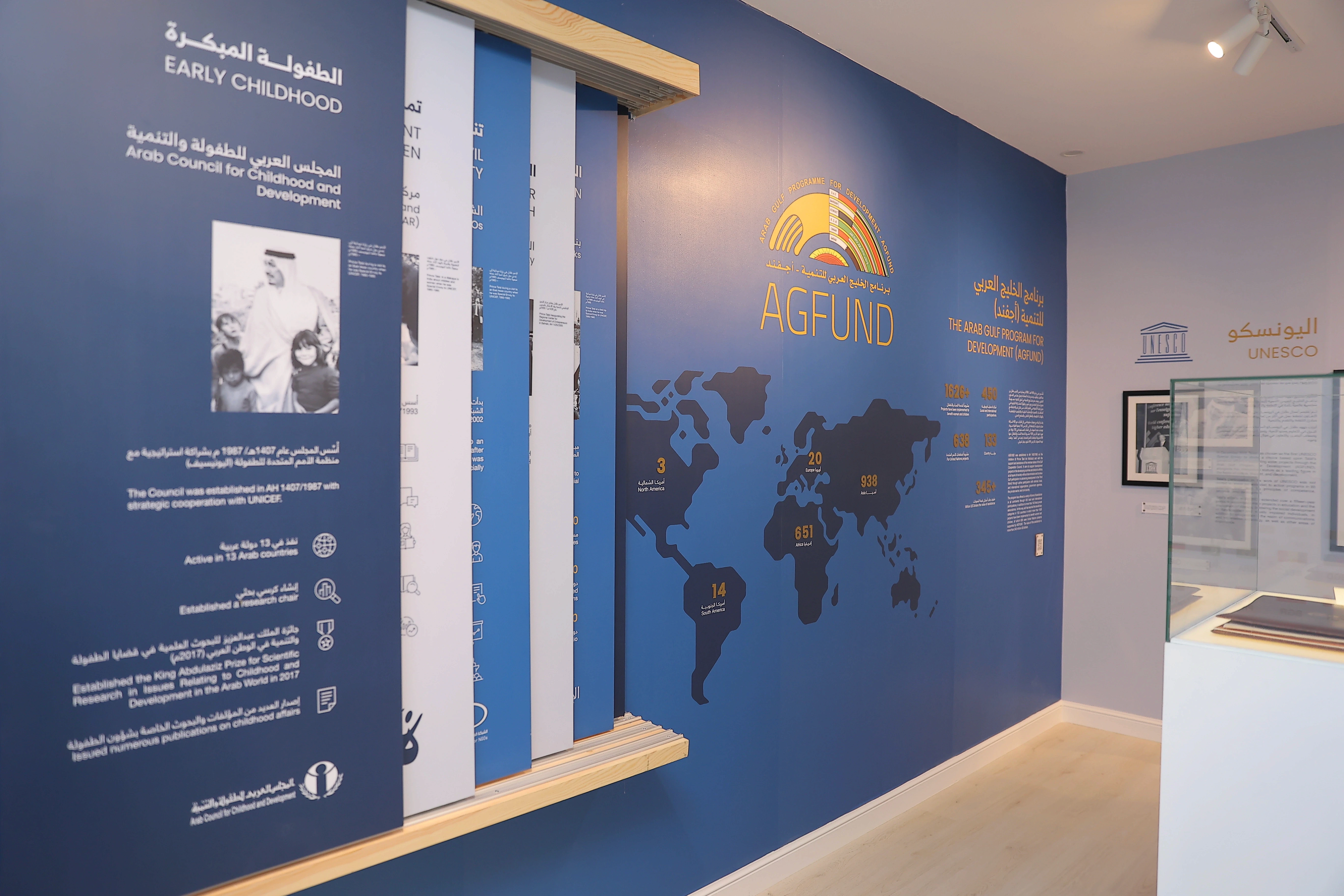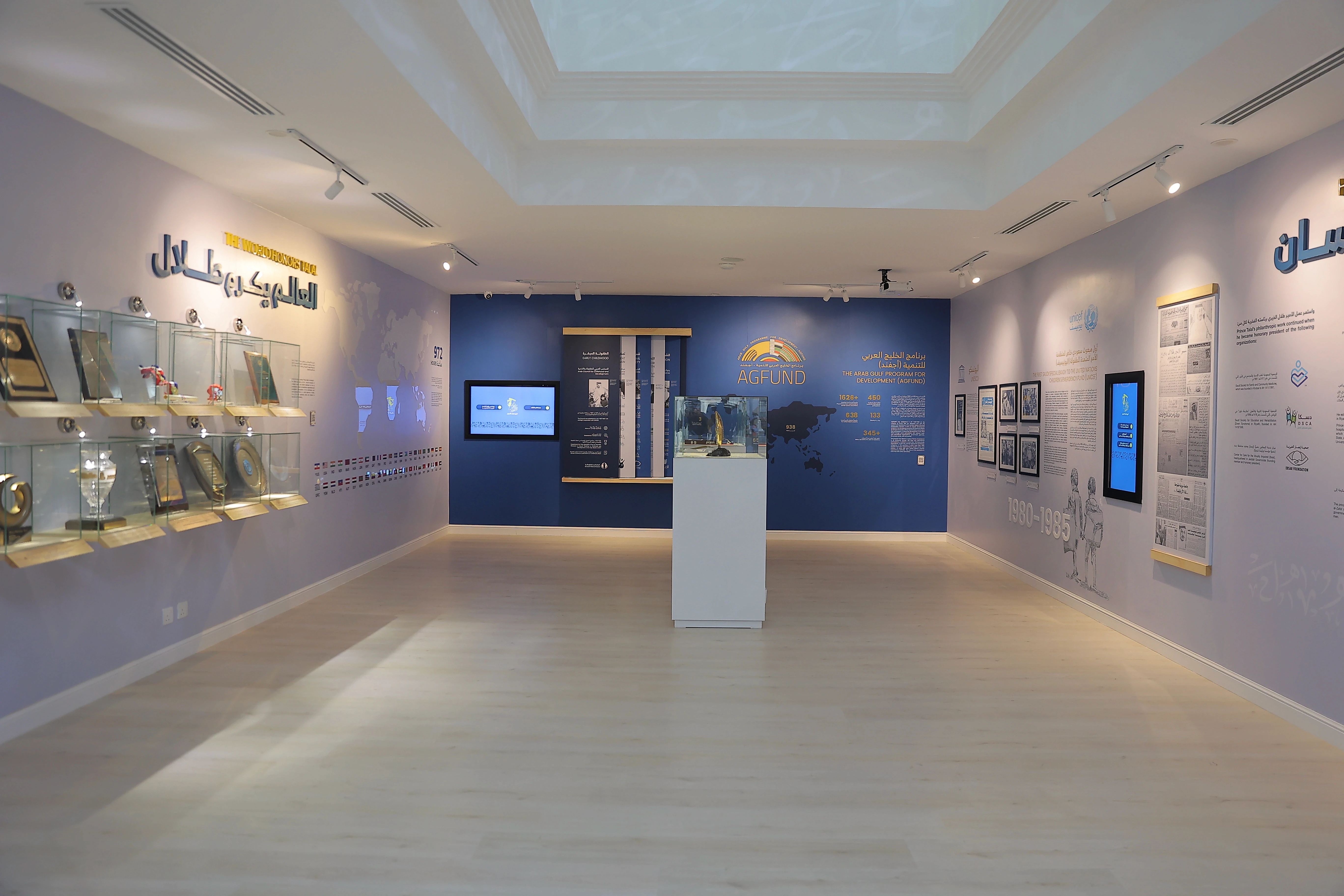 Design, delivery, and visitor experience for a museum exhibition that tells the story of the organization and its founder, linking the founder’s journey to the organization’s development and humanitarian role through a visual narrative and integrated textual content that highlights the founder’s vision and its impact on shaping AGFUND’s achievements, within a clear, progressive museum experience for visitors.